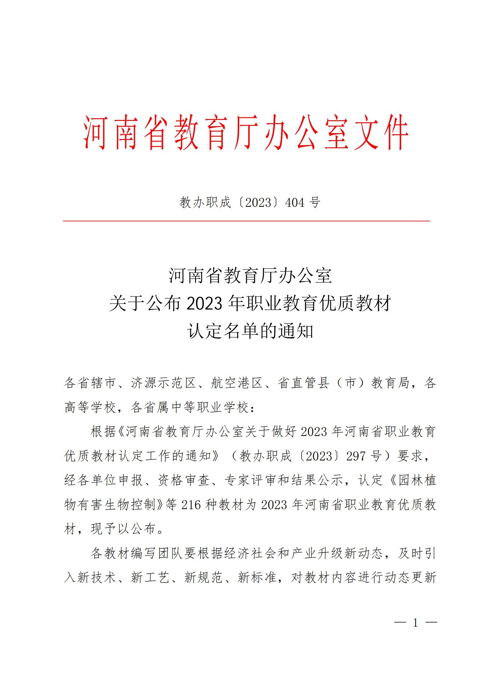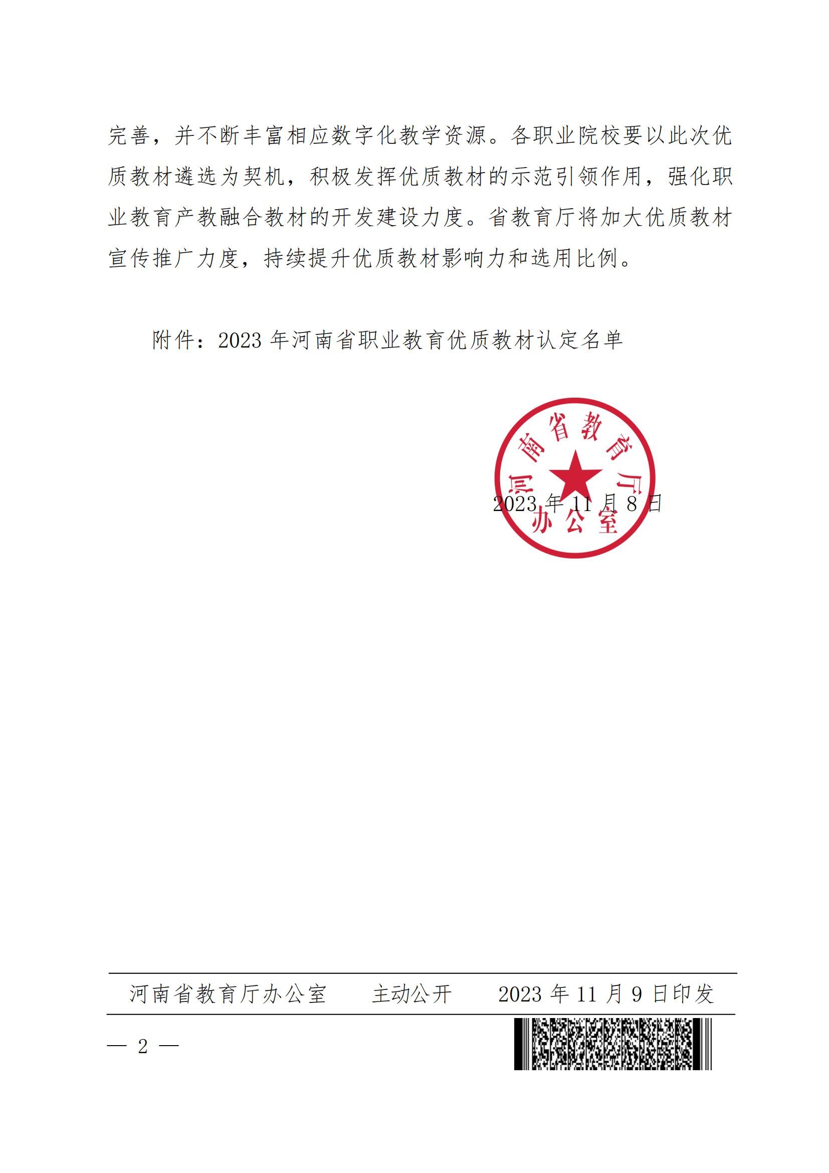 2023 年河南省职业教育优质教材