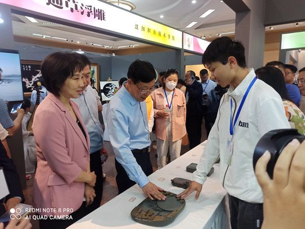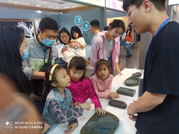 省厅领导、河南大学美术院校专家等观看了砚艺项目展示,各院校美术同行、各地中小学观摩学生兴趣盎然地参与砚艺体验。大家都给予高度评价。