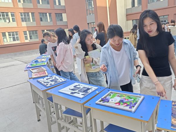 学生们以童心为笔,教育为纸,在老师指导下,精心绘制出属于他们的专业成长答卷。教育艺术学院师生兴趣盎然,都驻足于展区,仔细端详各类作品,纷纷赞叹凝聚同学们心血与无限创意的作品。手工环创课指导老师在现场详细介绍学生们做的精美和创新的掐丝珐琅工艺制品,更是让大家共同走进这片童心与智慧交织的天地。学前教研室组织专业老师和学生代表,从展评作品中评选出十佳优秀作品。
