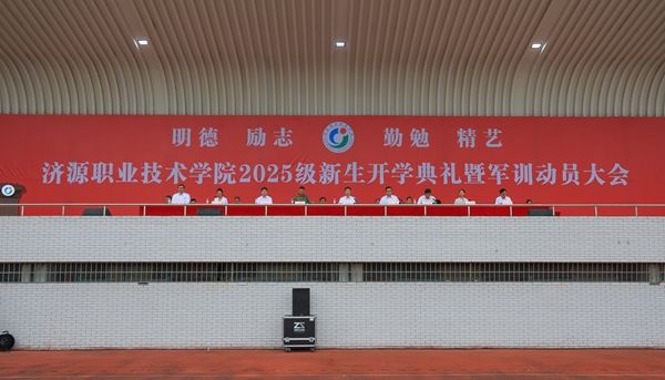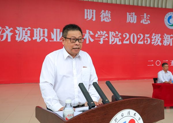 王磊代表学校向全体新同学致以热烈欢迎,向承训部队全体官兵表示崇高敬意,向辛勤培育同学们成长的家长和老师们致以诚挚问候。他介绍了学校建校30多年来的发展历程、办学特色和丰硕成果。他强调,面对AI时代,良知与温度是人类不可替代的价值,这是做人底线、道德法则,也是向上力量。他寄语新生涵养良知、保持温度,以包容之心待人接物,汇聚力量照亮世界,争做有良知、有温度的济职人,修身立德、仁爱向善。并鼓励大家行胜于言,用尝试丰富阅历、锻造意志,未来能自豪称“我在济职成为了更好的自己”。
