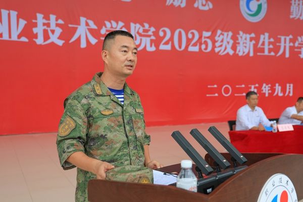 教师代表胡志涛、在校生代表王亚楠、新生代表闫家旗分别在会上发言。学校举行2025级新生开学典礼暨军训动员大会。