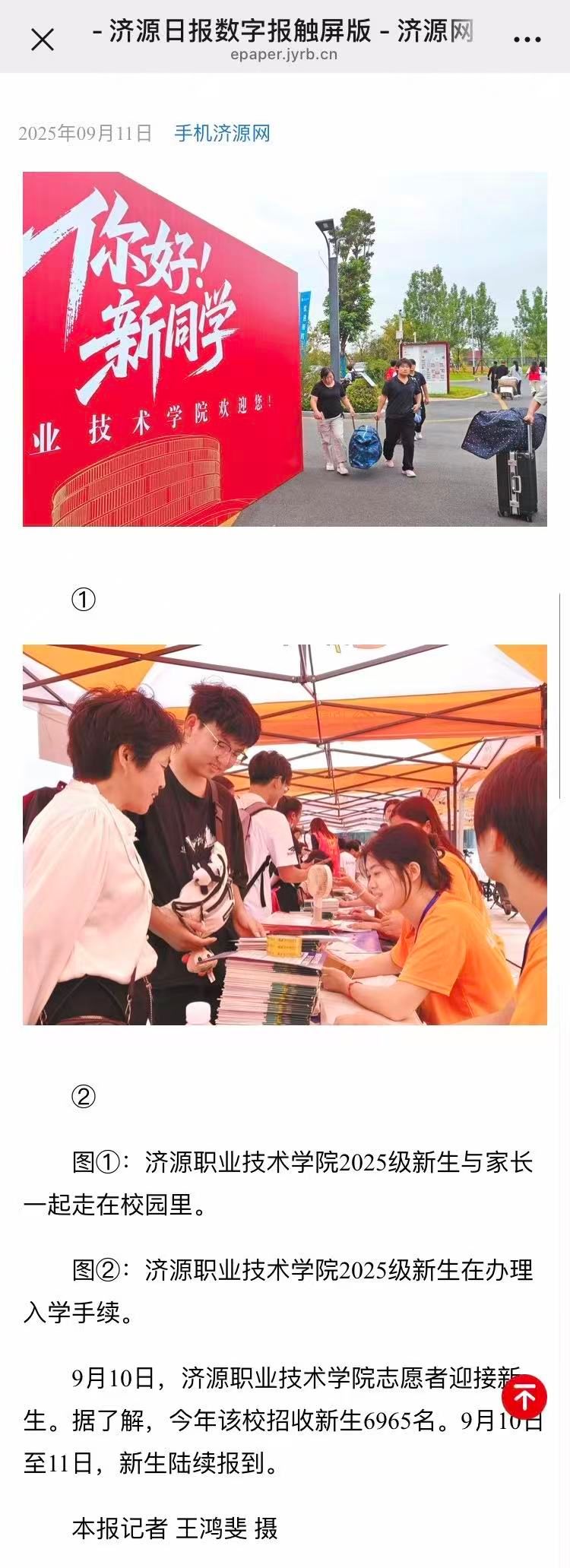 转自2025年9月11日 济源网济源日报数字报:济源职业技术学院迎来近7000名新生