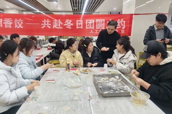 12月18日,人工智能学院举办“情暖冬至,AI香饺——共赴冬日团圆之约”主题活动,全院师生与成长导师齐聚一堂,在欢声笑语中体验民俗乐趣,共叙深厚情谊。