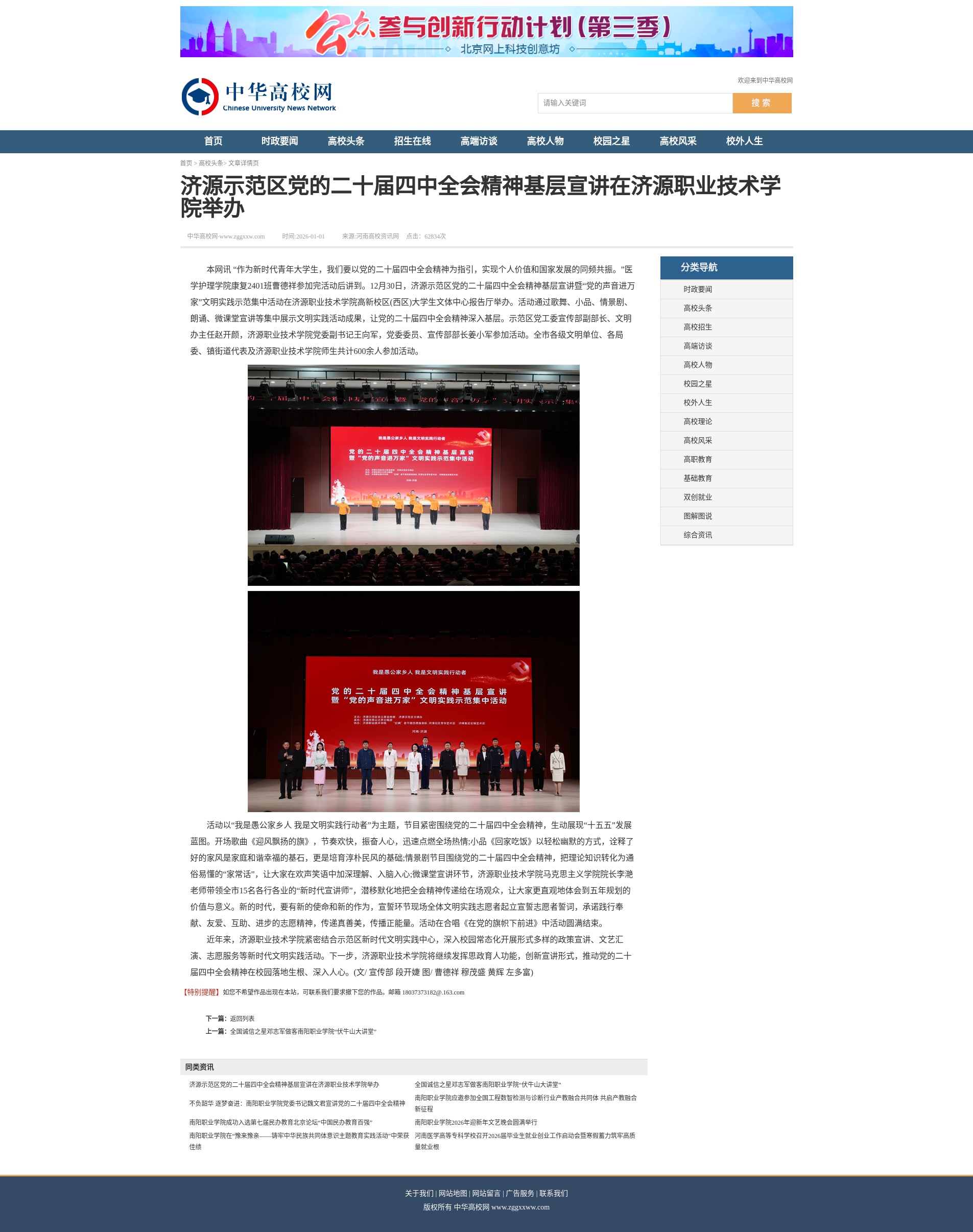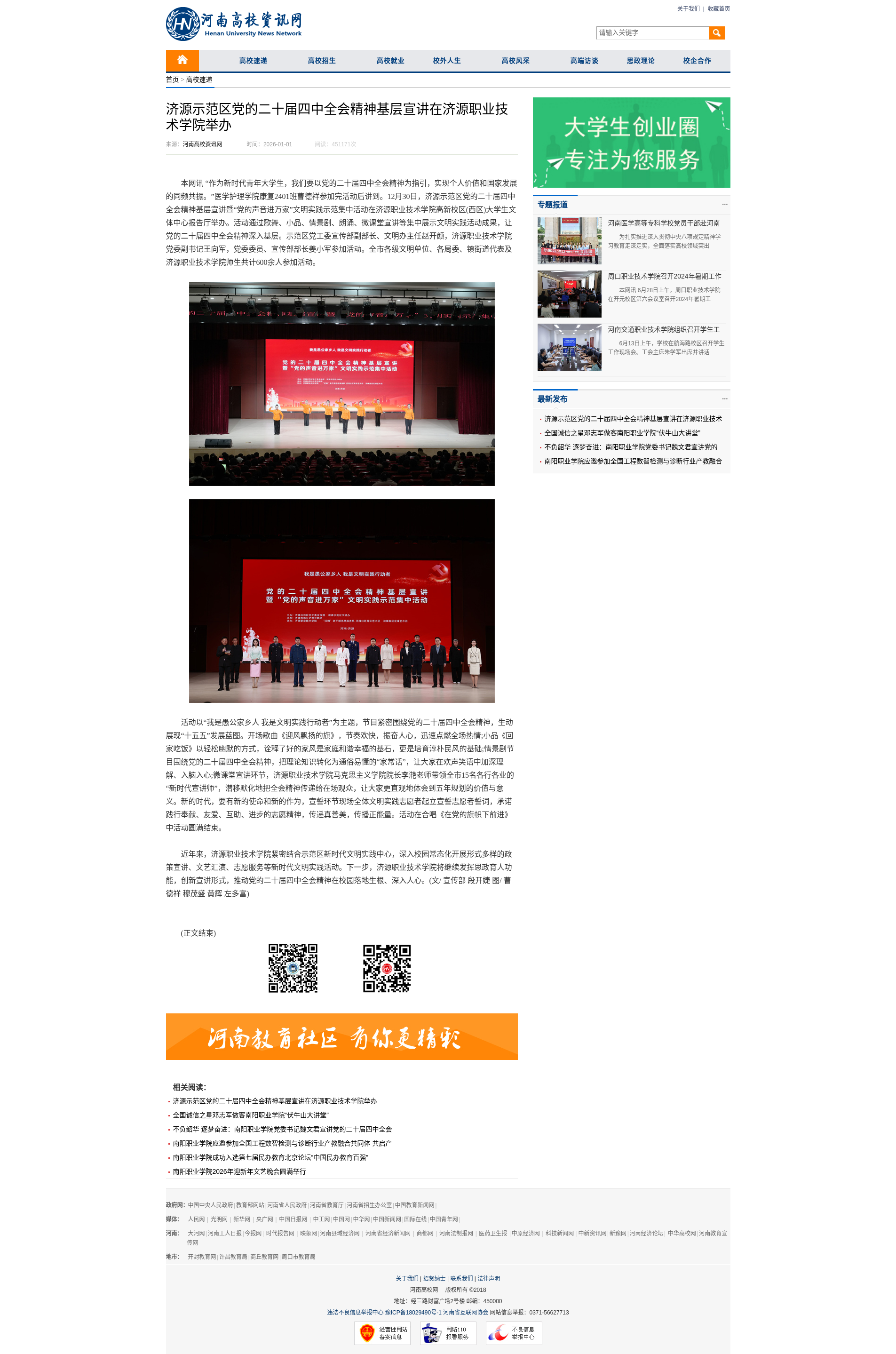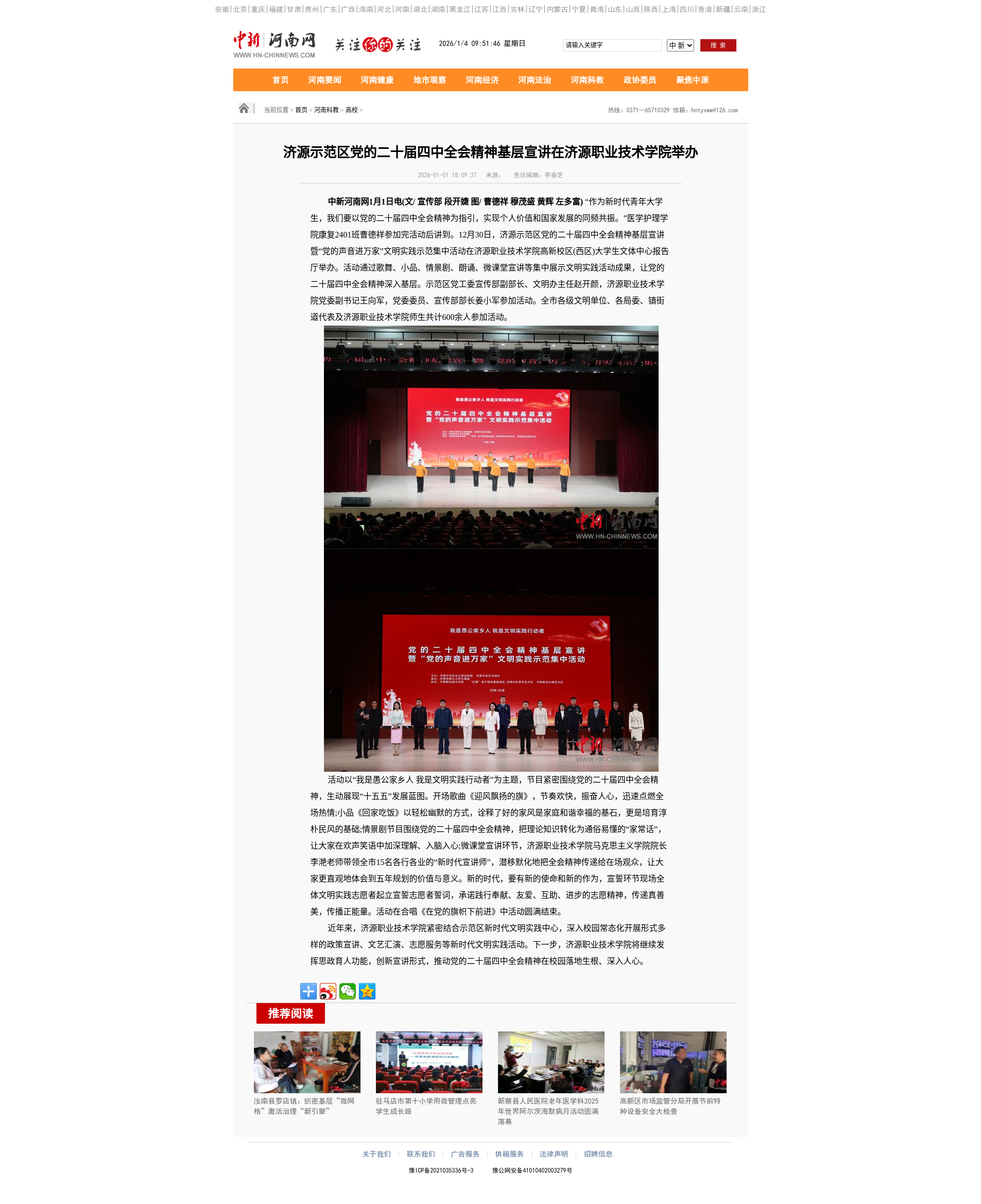 转自2026年1月1日 河南高校资讯网、中华高校网、中新网:济源示范区党的二十届四中全会精神基层宣讲在济源职业技术学院举办