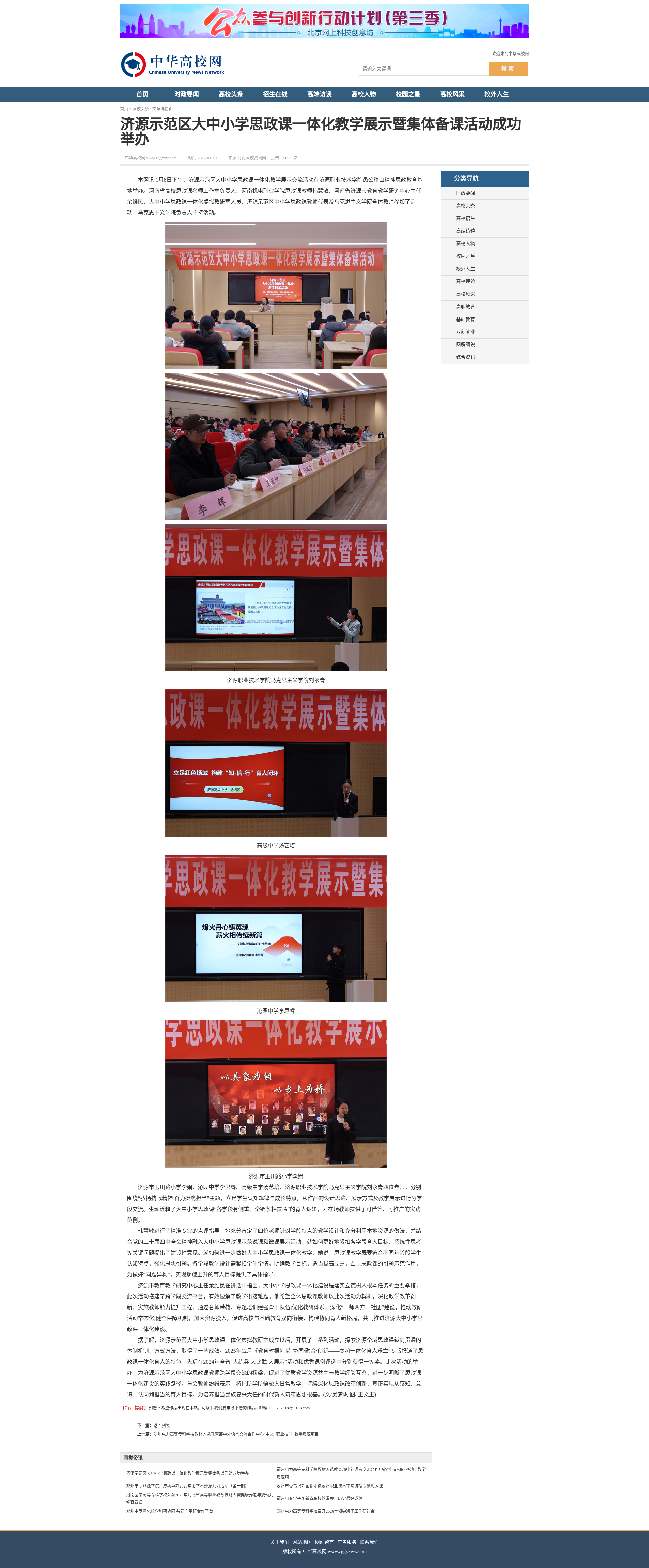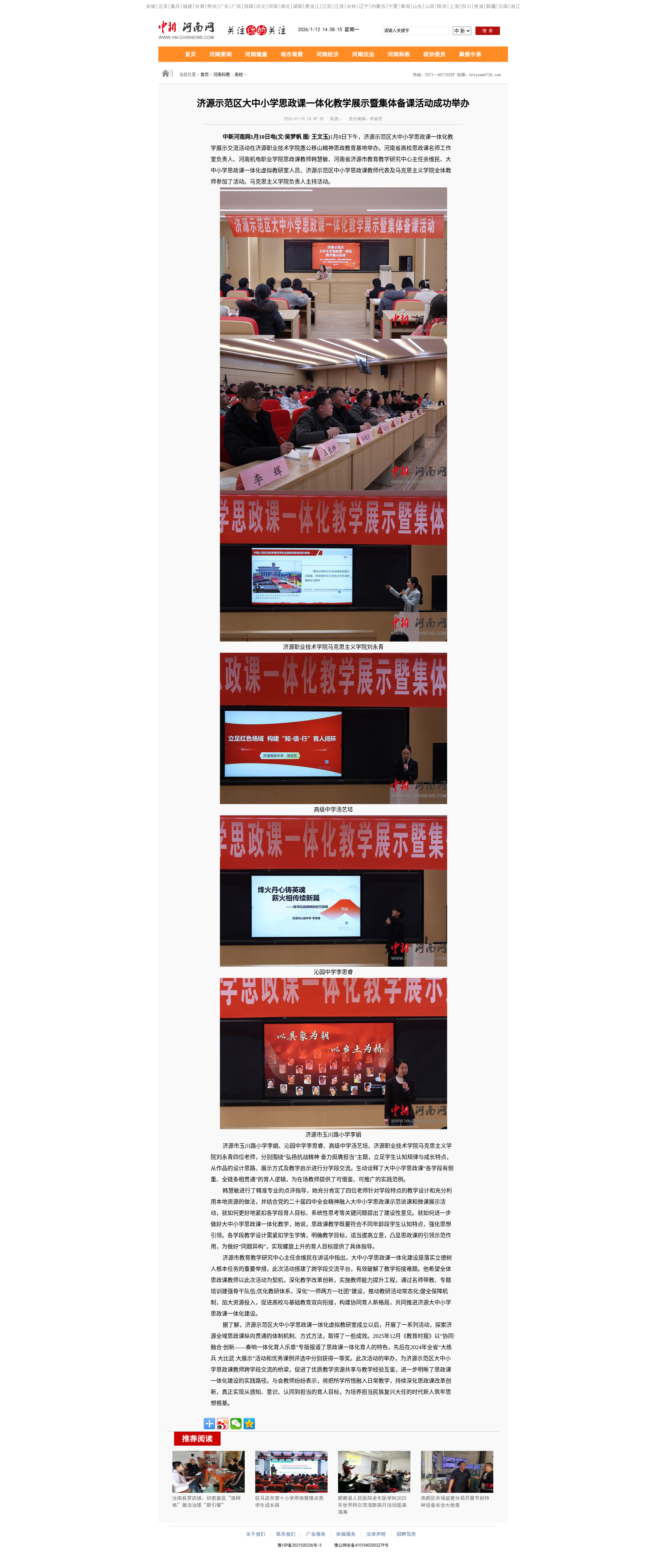 转自2026年1月10日 河南高校资讯网、中华高校网、中新网、河南高校行:济源示范区大中小学思政课一体化教学展示暨集体备课活动成功举办
