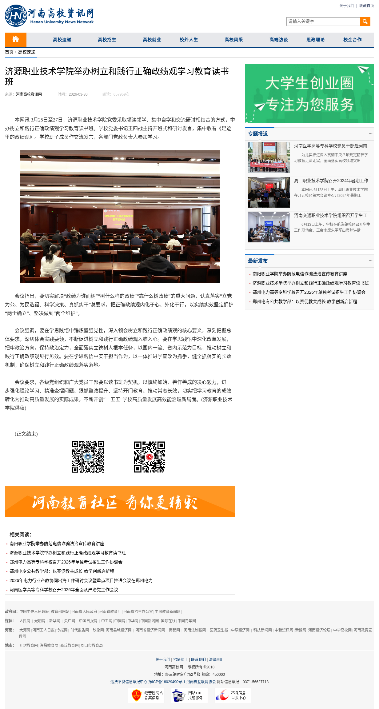 转自2026年3月30日 河南高校资讯网、中华高校网、中新网、河南高校行:济源职业技术学院举办树立和践行正确政绩观学习教育读书班