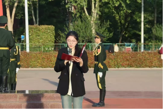 作为一名共青团员,王雅楠同学始终以高标准要求自己,积极追求进步。在庄严的升旗仪式中主持,她将仪式视为对国家的崇高礼赞与信仰的坚定表达。日常注重理论学习,关注时事,自觉将个人理想融入时代洪流,展现出新时代青年应有的思想觉悟与责任担当。