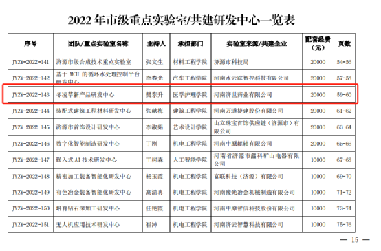 根据党政办〔2022〕72 号《济源职业技术学院党政办公室 关于下达2022年科研项目及经费的通知》,我院申报济源市社科联项目3项,院级重点项目3项,院级一般科研课题4项,市级重点实验室1个。
