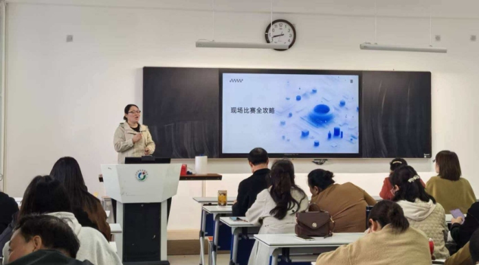 随后,唐帅老师结合自身丰富的参赛经验,就现场比赛的流程、技巧及注意事项进行了全面而深入的讲授。唐老师从比赛前的准备工作、现场教学展示的策略、答辩环节的应对技巧等方面入手,分享了诸多实用的“干货”。他特别强调,现场比赛不仅是对教学能力的检验,更是对教师心理素质、应变能力的考验,鼓励教师们在备赛中注重细节打磨,自信从容地展现教学风采。