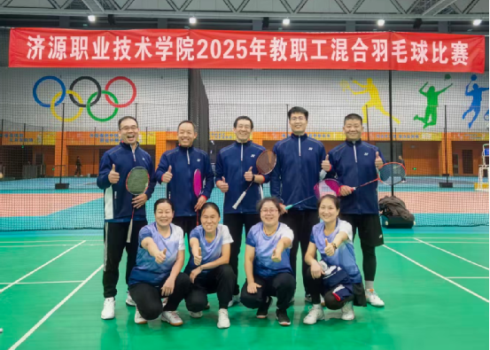 羽球飞扬展风采,凝心聚力铸辉煌。近日,济源职业技术学院2025年教职工羽毛球混合团体比赛在高新校区大学生文体活动中心圆满落幕。机电工程学院代表队凭借精湛的球技、默契的配合与顽强的拼搏精神,一路过关斩将,最终摘得桂冠,为学院赢得了崇高荣誉。