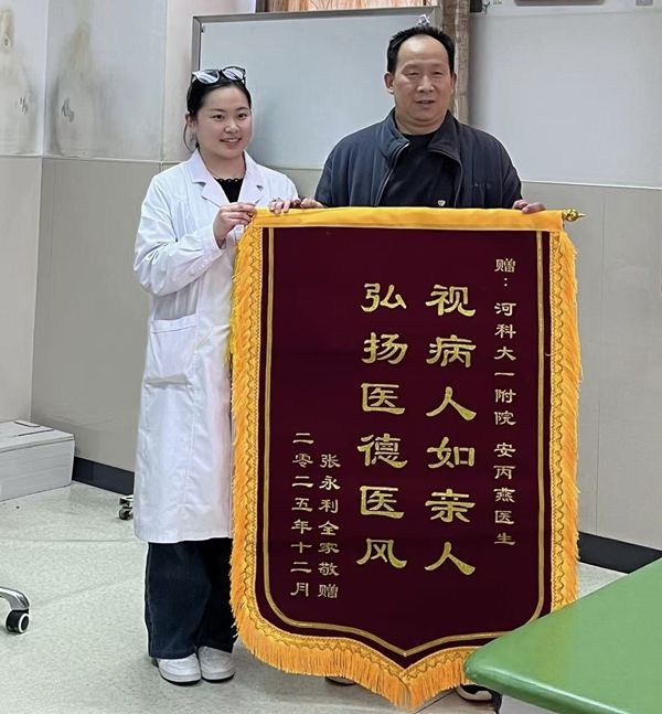 度过了漫长而艰辛的康复之路。患者及家属曾经历的焦虑与无力,她也感同身受。而患者最终的出院与康复,则成为她实习生涯中熠熠生辉的印记。出院当天患者全家特意来到科室,将锦旗送到安丙燕手中。这份质朴而真挚的认可,让她深受感动:“何其荣幸能得到患者的信任,这也让我更加明白,医务工作者肩负的是生命的重托与希望,同时也激励着我成为一名真正的医务工作者。”