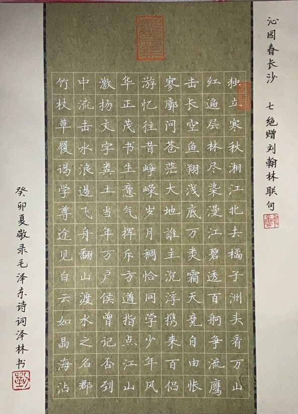 艺术设计学院学生刘泽林的书写作品《沁园春·长沙》