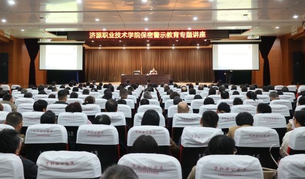 为进一步增强我校教职工保密意识,强化保密工作管理, 3月14日,我校在实训B楼学术报告厅组织开展了保密警示教育活动,邀请济源示范区党工委机要保密局主任刘朝晖作专题讲座。校领导、中层以上干部和行政教辅部门教职工参加。