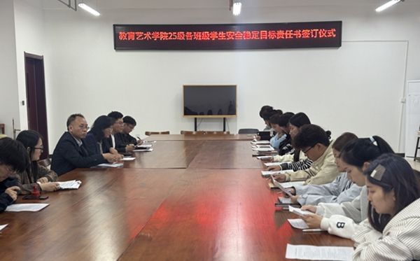 10月13日,教育艺术学院举行2025级新生安全稳定目标责任书签订仪式。活动旨在切实维护教育艺术学院学生的安全稳定,落实“一岗双责”,确保学生工作的有序开展。教育艺术学院负责人、全体新生辅导员、各班班长及团支书参会。