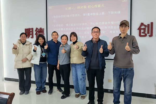 1月23日下午,马克思主义学院在党员活动室开展了“辞旧迎新承美德·铸魂育人践初心”教师综合素质大比拼活动。全院教师齐聚一堂,以党小组为单位组成四支参赛队伍,通过“拼对联·初心传薪火”“马院专属·你比我猜”等环节,将传统文化素养、思政课教师专业素养以及团队协作精神等元素巧妙融合,传承思政初心,凝聚育人力量。