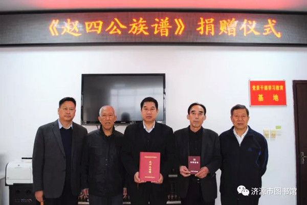 11月7日,济源市承留镇的赵氏老族长赵家富和现任族长赵旺全带领族人赵家敏、赵英立向学院图书馆捐赠了河南省济源市承留镇《赵四公族谱》,捐赠仪式在图书馆举行。