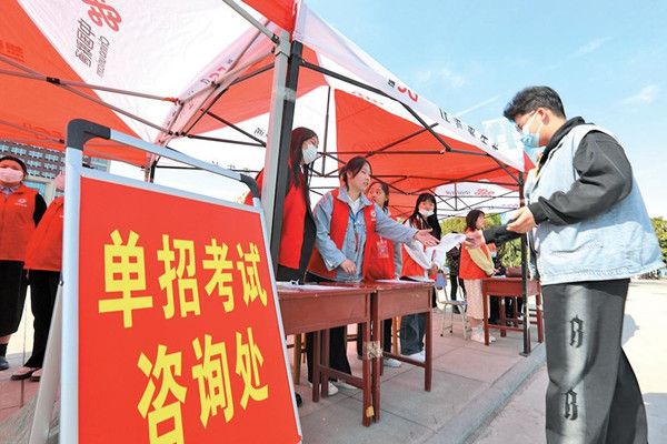 4月8日,济源职业技术学院单招考试现场,考生来到咨询处咨询。为确保该学院单招考试顺利开展,示范区高度重视,召开专题会议,各单位通力协作,为考生提供安全保障,保证考试公平、公正。 李楠 苗娱宁 摄