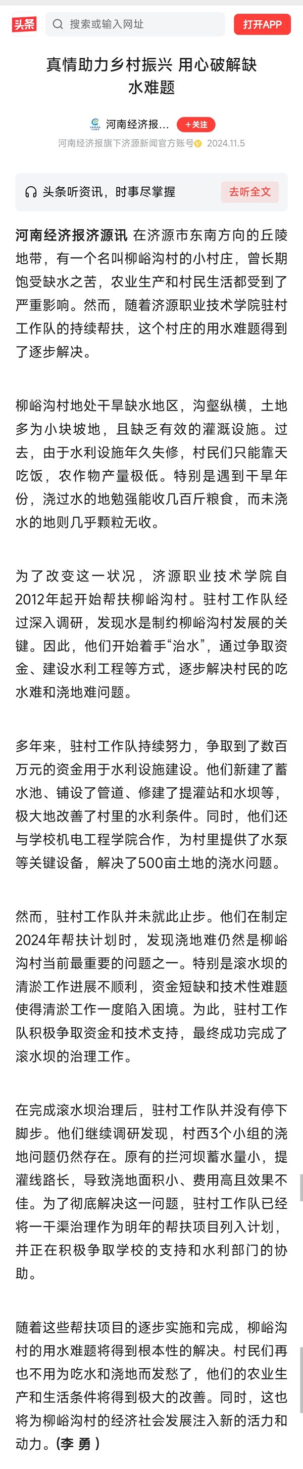 转自2024-11-05 河南经济报:真情助力乡村振兴 用心破解缺水难题