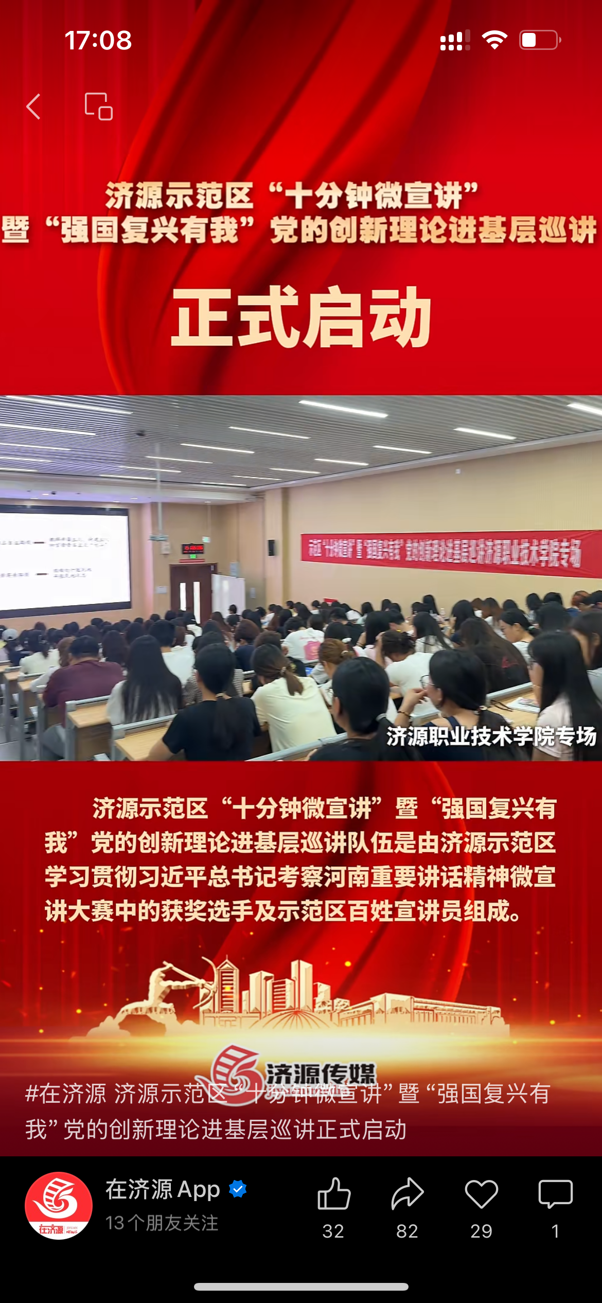 转自2025年9月15日 在济源App公众号:济源示范区“十分钟微宣讲”暨“强国复兴有我”党的创新理论进基层巡讲正式启动