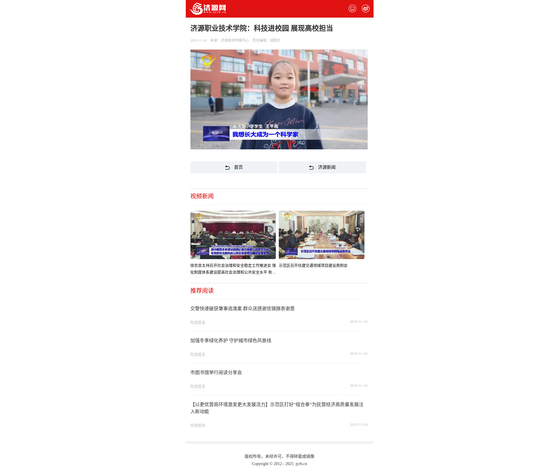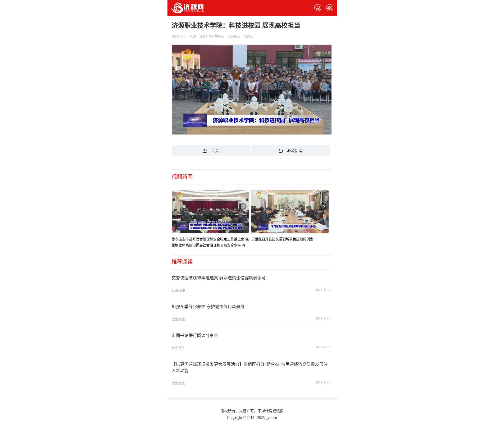 转自2025年11月10日 济源网:济源职业技术学院:科技进校园 展现高校担当