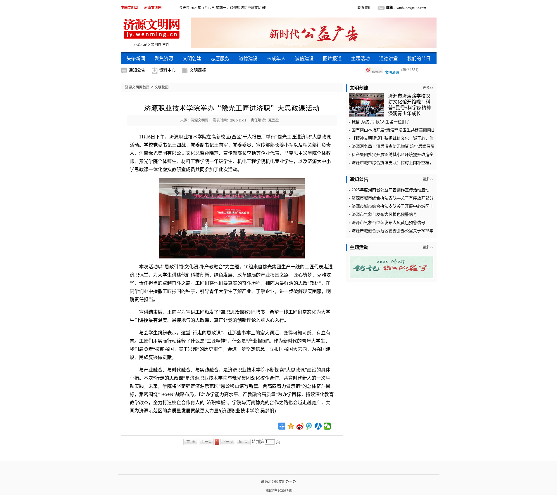转自2025年11月11日 济源文明网:济源职业技术学院举办“豫光工匠进济职”大思政课活动