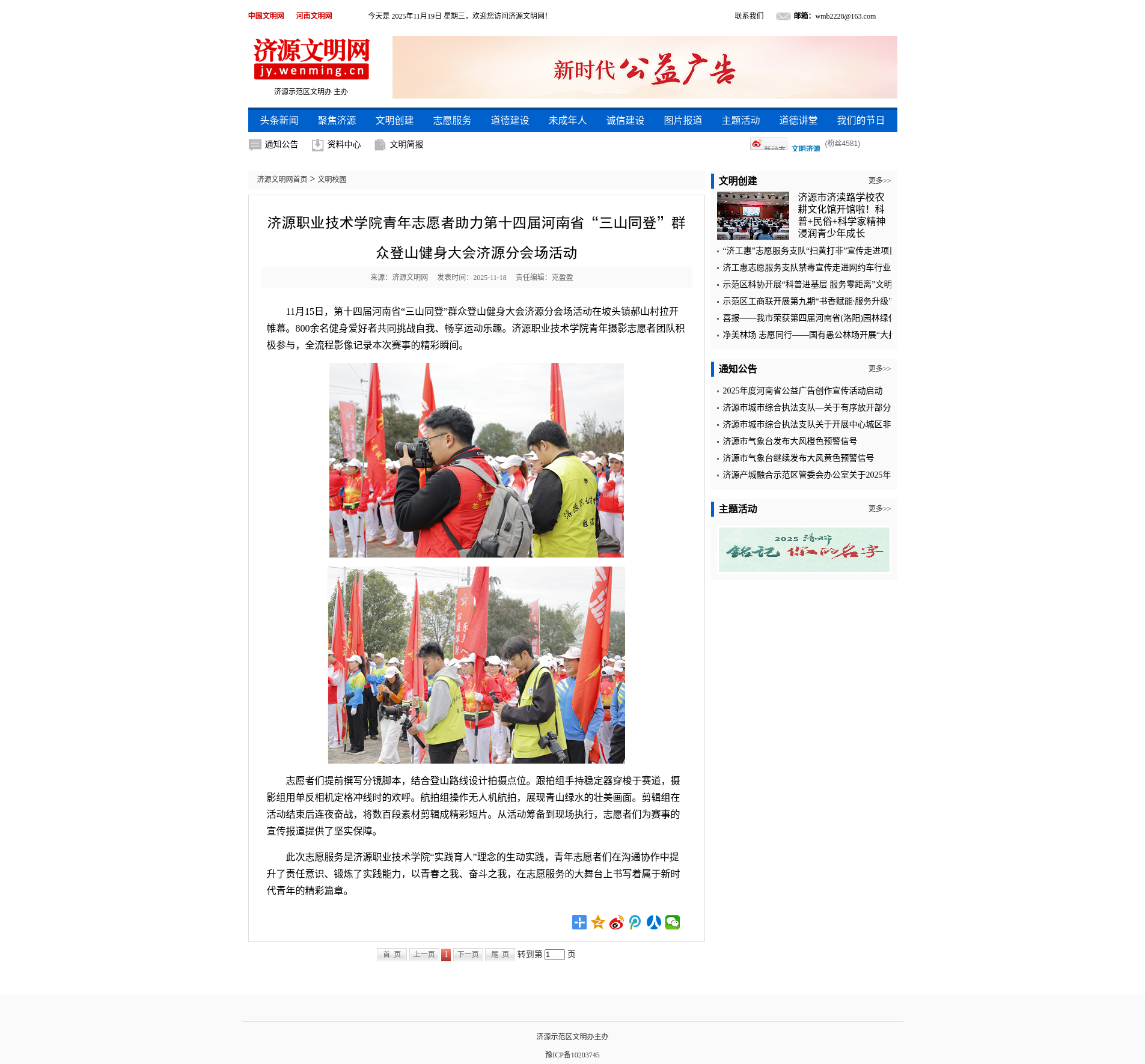 转自2025年11月18日 济源文明网:济源职业技术学院青年志愿者助力第十四届河南省“三山同登”群众登山健身大会济源分会场活动