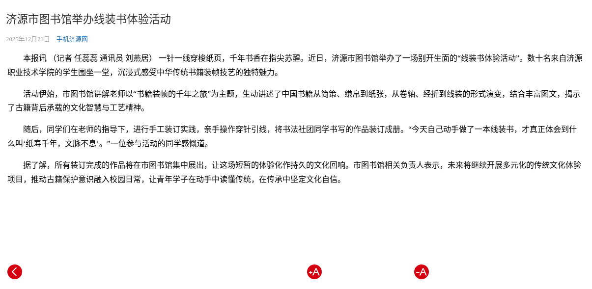转自2025年12月23日 济源日报数字报:济源市图书馆举办线状书体验活动