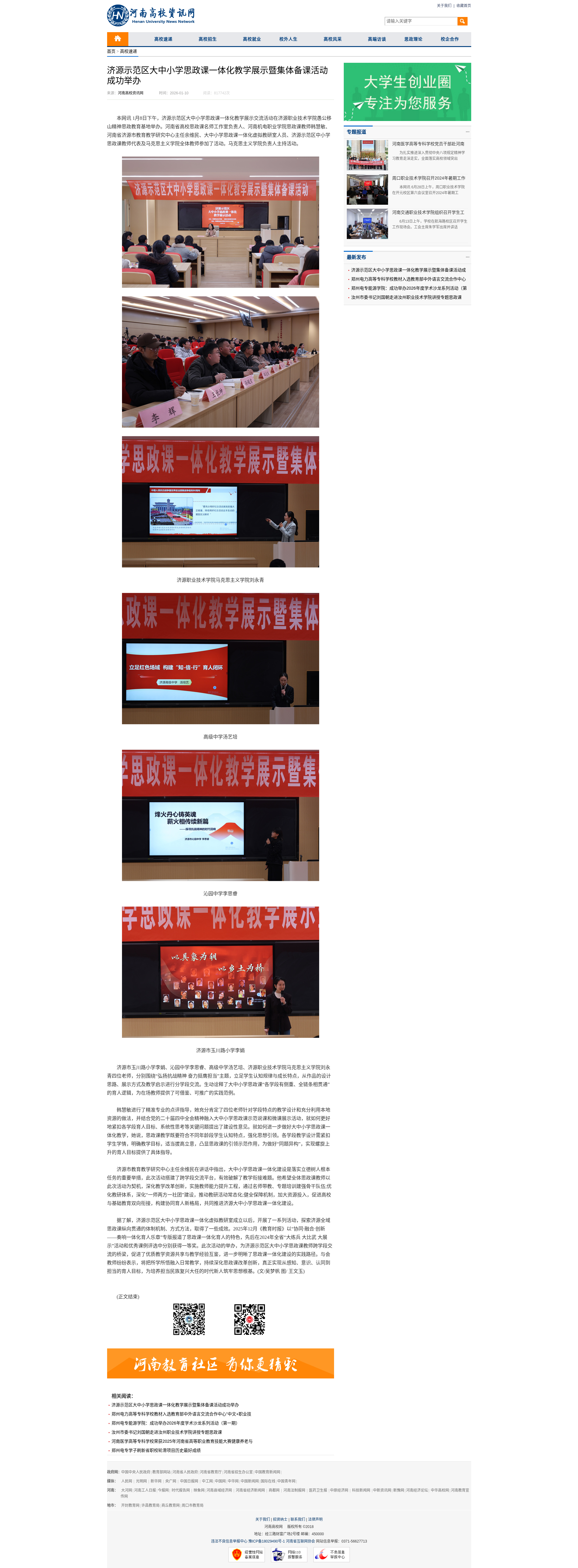 转自2026年1月10日 河南高校资讯网、中华高校网、中新网、河南高校行:济源示范区大中小学思政课一体化教学展示暨集体备课活动成功举办
