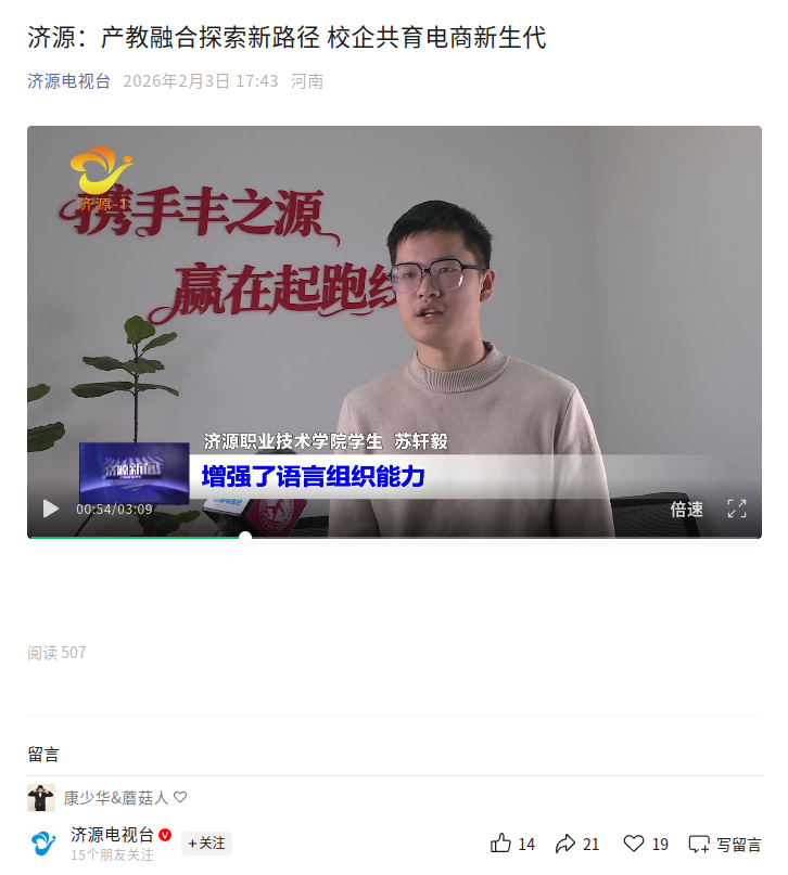 转自2026年2月3日 济源电视台:济源:产教融合探索新路径 校企共育电商新生代