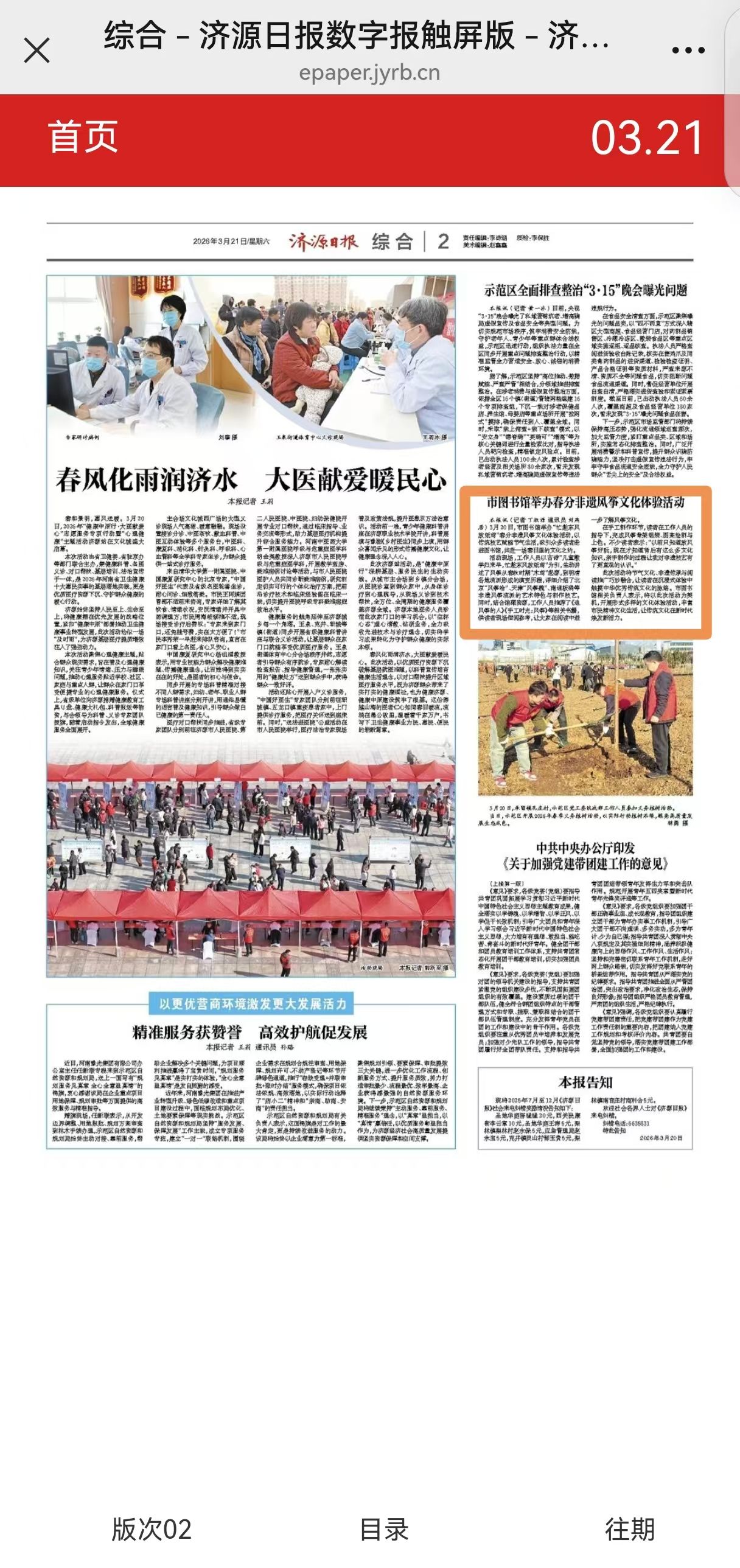 转自2026年3月21日 济源日报:市图书馆举办春分非遗风筝文化体验活动