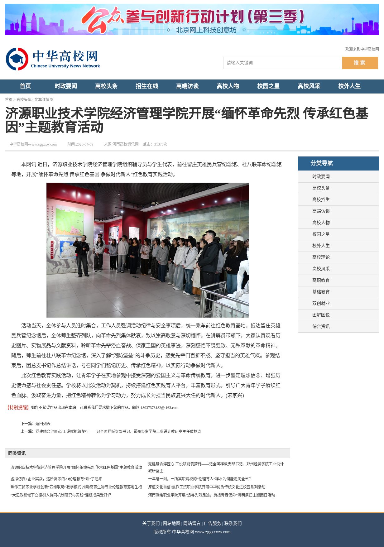 转自2026年4月9日 河南高校资讯网、中华高校网、中新网、河南高校行:济源职业技术学院经济管理学院开展“缅怀革命先烈 传承红色基因”主题教育活动