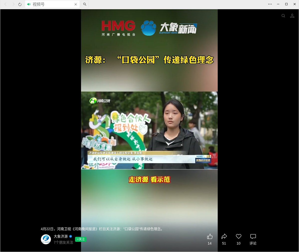 转自2026年4月22日 大象济源微信公众号 :济源:“口袋公园”传递绿色理念
