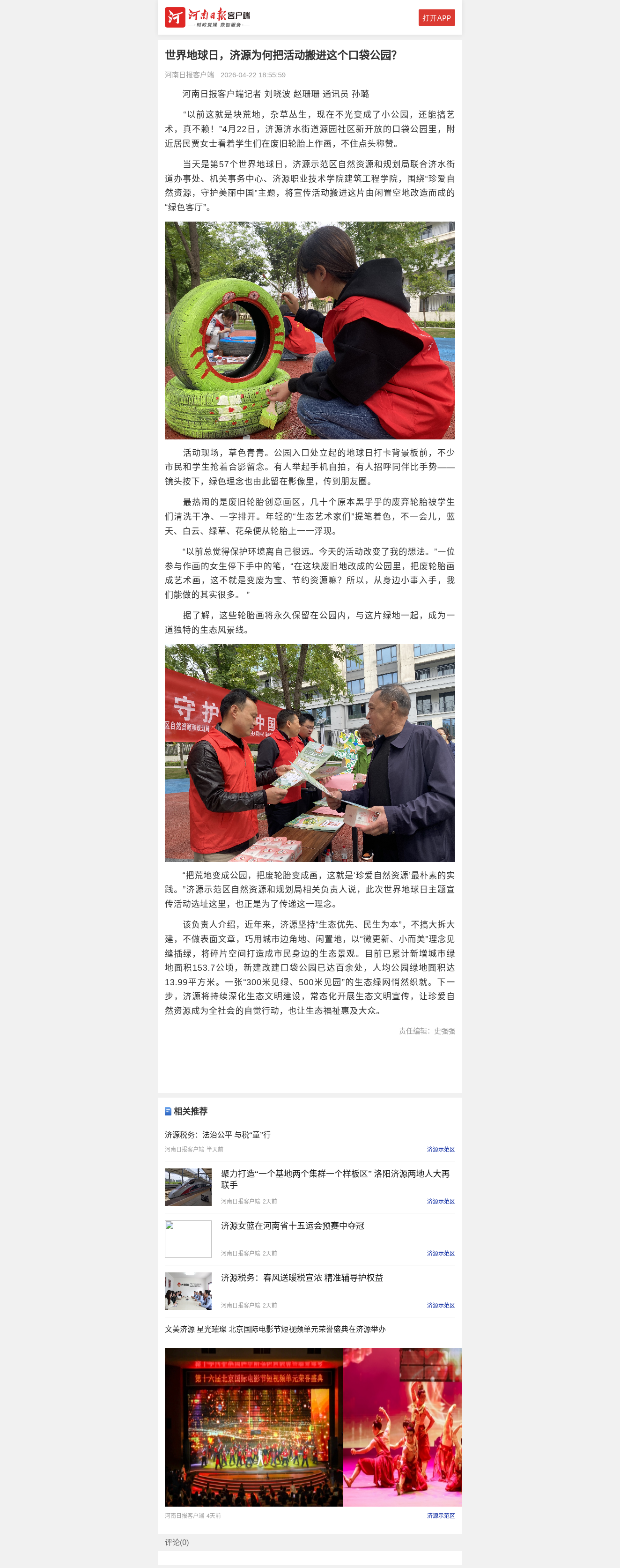 转自2026年4月22日 河南日报客户端 :世界地球日,济源为何把活动搬进这个口袋公园?