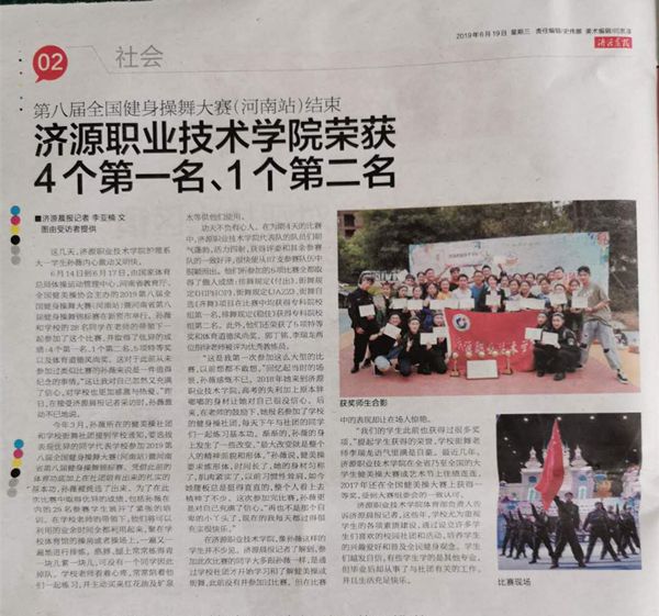 6 月 14 日到 6 月 17 日,由国家体育总局体操运动管理中心、河南省教育厅、全国健美操协会主办的 2019 第八届全国健身操舞大赛(河南站)暨河南省第八届健身操舞锦标赛在新密市举行。孙薇和学校的 28 名同学在老师的带领下一起参加了这个比赛,并取得了优异的成绩:4 个第一名、1 个第二名、5 项特等奖以及体育道德风尚奖。这对于此前从未参加过类似比赛的孙薇来说是一件值得纪念的事情。“这让我对自己忽然又充满了信心,对学校也更加感激与热爱。”昨日,在接受济源晨报记者采访时,孙薇激动不已地说。