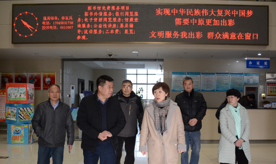 1月10日上午,由省文化和旅游厅巡视员李霞带队、人事科技教育处处长吕承俊及相关处室负责人组成的河南省文化和旅游厅安全生产督导检查组一行6人到图书馆检查安全生产工作。济源市人民政府副秘书长牛友谊,市文广新局副局长袁向生、牛健,市旅发委党组书记、常务副主任刘慧华、副主任许世栋等陪同检查。