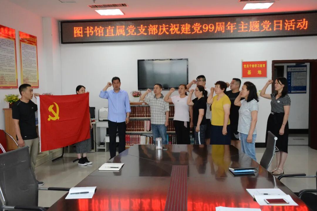 今年7月1日是建党99周年纪念日。6月30日上午,图书馆直属党支部召开党员大会,以“牢记初心使命,奋进复兴征程”为主题开展建党99周年主题党日活动。