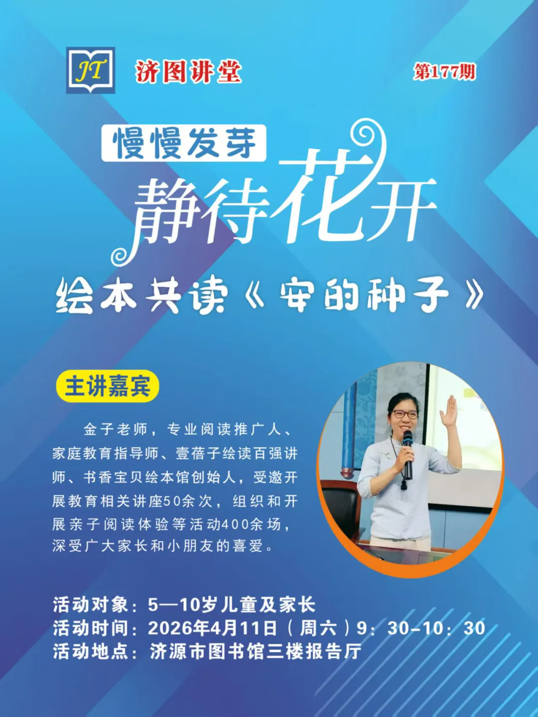 活动预告 | 《济图讲堂》——“慢慢发芽·静待花开”儿童绘本共读讲座