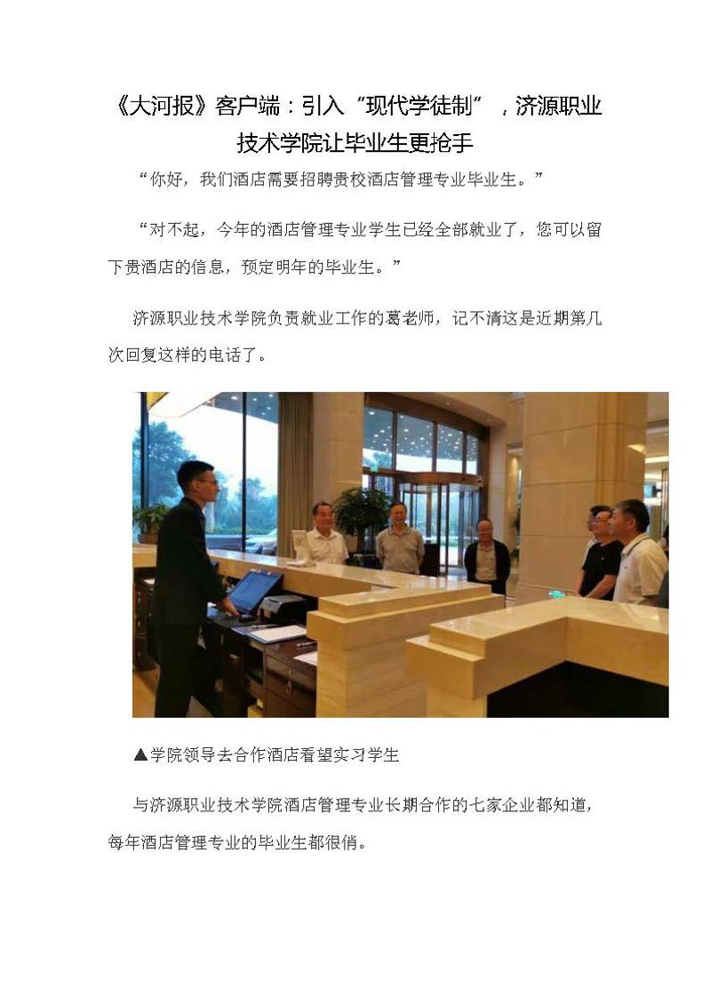 引入“现代学徒制”,济源职业技术学院让毕业生更抢手