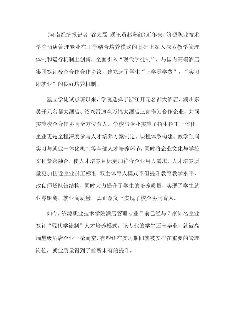 济源职业技术学院 引入“现代学徒制” 开出“校企合作”花