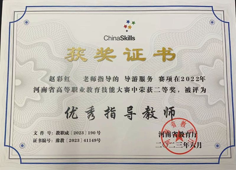 2023年河南省高等职业教育技能大赛导游服务赛项优秀指导教师--赵彩红