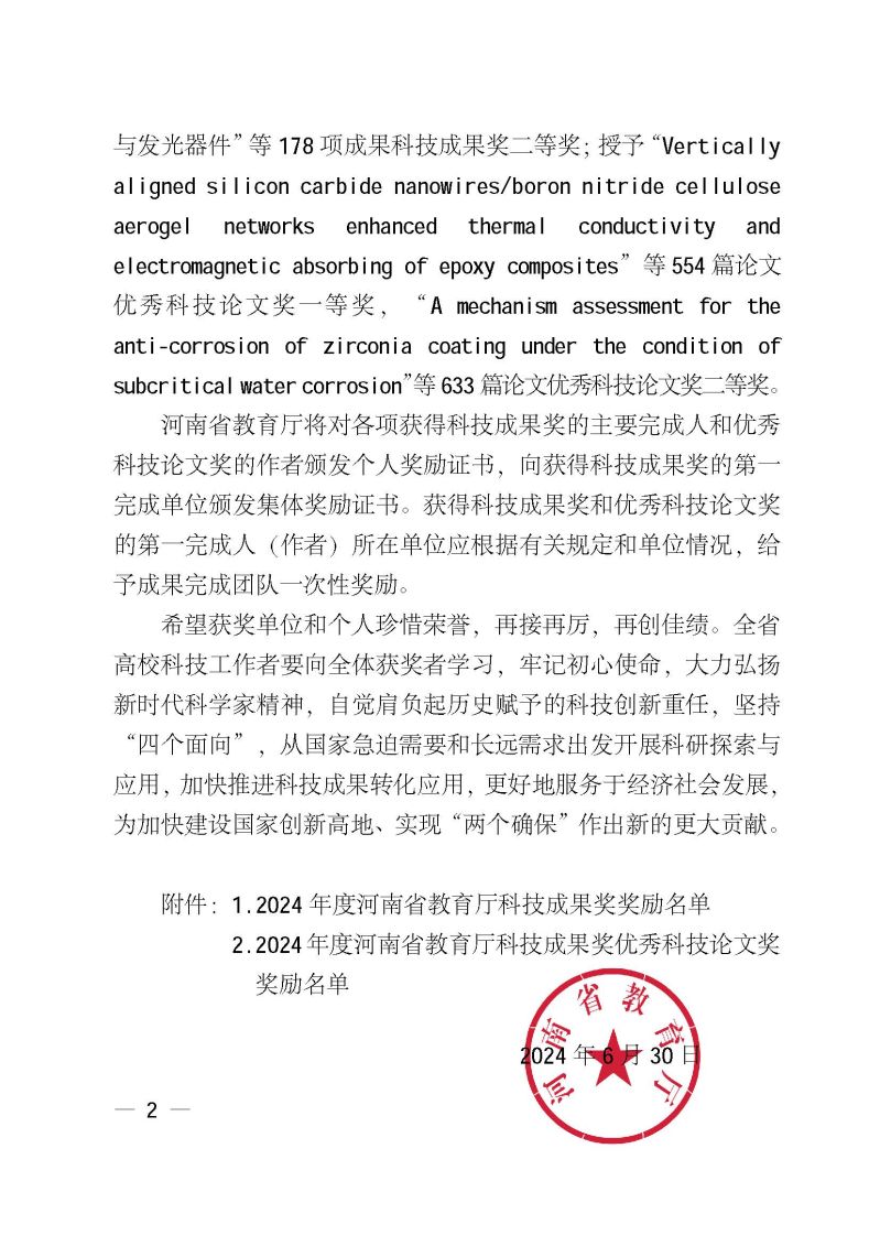 2024年河南省教育厅科技成果奖二等奖--赵彩红
