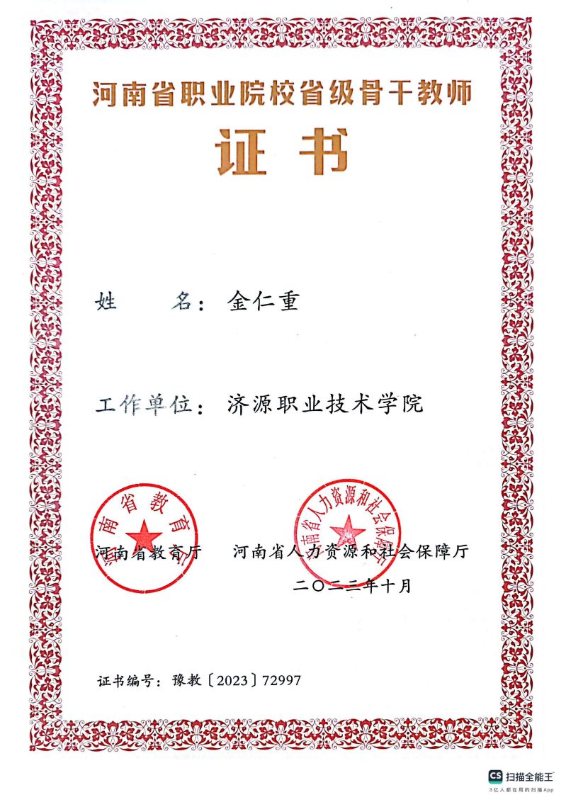 省级青年骨干教师 --教育厅 人社厅(金仁重)