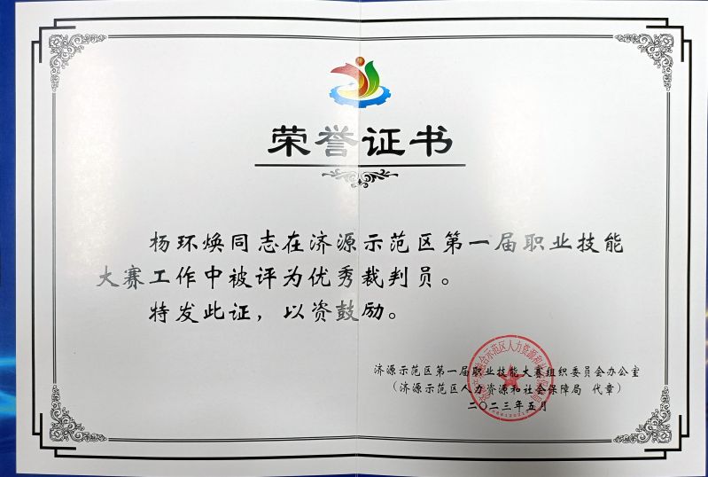 2023年5月,济源示范区第一届职业技能大赛优秀裁判员--杨环焕