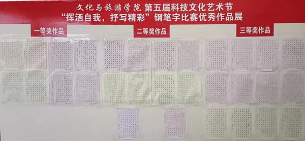 为增强学生写规范字、用规范字的意识,促进学生良好书写习惯的养成,营造良好的校园文化建设氛围,日前,文化与旅游学院开展第五届科技文化艺术节“挥洒自我,抒写精彩”钢笔字比赛,200多名学生参赛。