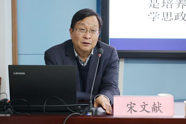 教育部本科教学审核评估专家、教育部师范专业认证专家、河南省高校设置专家委员会委员、河南省大中小学思政课一体化专家宋文献教授作报告。他从“为何要构建大中小思政课一体化”“大中小思政课程一体化面临的困境”“大中小思政课程一体化体系构建”三个方面进行精彩讲解。做好大中小学思政课一体化建设,一是要把握思政课一体化内涵,树立系统思维,打破学段区隔,坚持分层分类,统筹好目标一致和内容梯度衔接的关系,统筹好教育主体的整体性和不同学段教学规律的关系。二是要构建完整的大中小学思想政治课程一体化体系,整体规划思政课课程目标、调整创新思政课课程体系、统筹推进思政课课程内容建设、统筹推进教学评价体系建设、整体推进高校课程思政和中小学学科德育。