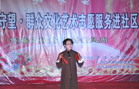 按照济源市邻里守望·群众文化艺术志愿服务进社区活动的总体安排,5月24日、25日晚,我院“洪森诵读”艺术团先后走进济水办事处玉仙社区、源园社区,开展文化志愿服务活动。数千名社区居民观看了演出。