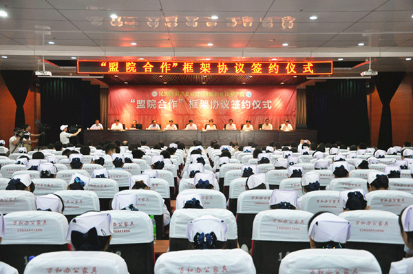 6月16日上午,民盟河南省委与我院“盟院合作”框架协议签约仪式在我院实训楼报告厅举行。民盟河南省委与我院签订框架协议,确立“盟院合作”关系;民盟郑州大学委员会与我院签订了对口教育帮带协议。省人大常委会副主任、民盟省委主委储亚平,民盟省委专职副主委柳锋波,民盟省委副巡视员王跃,郑州大学党委副书记李兴成,民盟郑州大学委员会主委臧卫东,济源市委书记王宇燕,市委常委、统战部长白玉成,副市长刘庆芳,济源市政府投资办主任、民盟济源支部主委苗礼战,民盟郑州大学委员会的专家代表,学院党委书记赵学通、院长陈学军等班子成员、相关部门负责人以及护理系800余名师生代表参加了签约仪式。