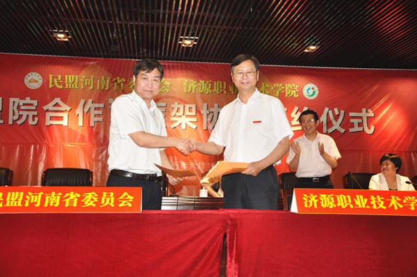 市委书记王宇燕指出,举行“盟院合作”对口教育帮带协议的签约仪式,既是我市多党合作事业发展史上的一件喜事,也是我市职业教育发展史上的一件大事。经过一年的努力,尤其是在民盟河南省委的大力推动下,“盟院合作”结出了硕果。王宇燕说,民盟河南省委汇集了全省教育、科研领域的高层次专家人才,长期致力于职业教育的帮扶帮带工作,对全省职业教育的发展作出了重要贡献。郑州大学是国家“211工程”的高校,拥有一流的创新人才、优质的智力资源和先进的科研成果。两家“强强联合”对济源职业技术学院提供重点对口帮扶,有利于提高济源职业技术学院的办学水平、助推济源的经济建设,对推动全省职业教育改革发展也具有重要的现实意义。在今后的工作中,我市将以最大的诚意、最优质的服务,持续推进合作协议的全面落实。希望济源职业技术学院牢牢把握这一重大机遇,科学组织、主动对接,积极谋求更大的发展空间。同时希望民盟省委、郑州大学对我们的工作经常性地给予指导和帮助、多提宝贵意见,助推济源加快建设职教强市,持续推动经济平稳健康发展。