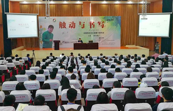 4月29日上午,于钟华博士在高新校区学术报告厅为济源广大书友和学院师生作了主题为 “‘触动与书写’中国传统文化关照下的书法”公益讲座,他从中国传统文化的现实内涵,结合自身的书法、教学的感悟和体会,用平实朴素的语言阐述了中国传统文化对书写的触动。