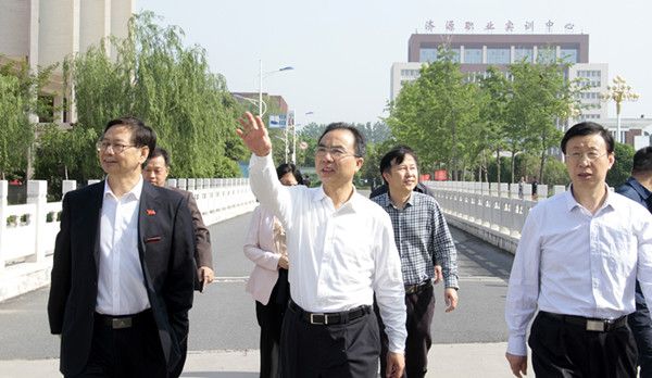 4月26日,省教育厅副厅长尹洪斌带领厅有关处室负责同志到我院调研指导工作,学院院长陈学军、市教育局局长刘善祥等陪同调研。